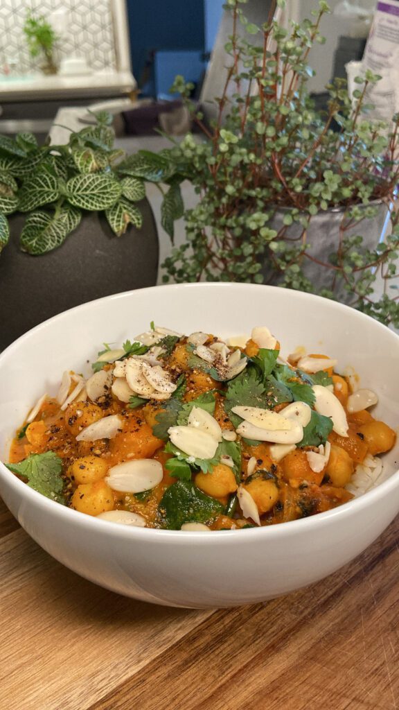 Fast forward a few years, and this recipe became a postpartum lifesaver. Before my daughter Violette was born, I prepped big batches of this curry and froze it in portions — future me was incredibly thankful. Curries and stews like this one are ideal for freezing, reheating, and even improving in flavor a day or two later. They made it so much easier to avoid last-minute takeout when energy was low but nutrition still mattered.