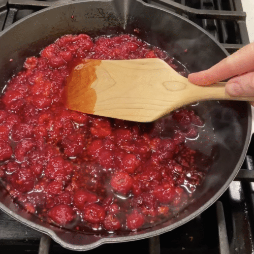Bring raspberries and maple syrup to a boil on the stovetop in a small pan